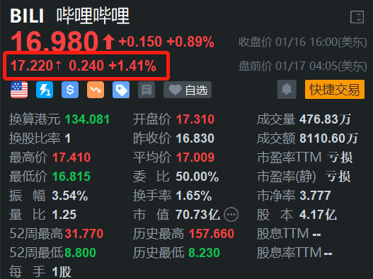格隆汇1月17日|哔哩哔哩(BILI.US)好意思股盘前涨1.4%报17.22好意思元。音讯上,中银国外发表商讨报告指,由于哔哩哔哩的手机游戏收入按年增长79%,加上告白收入升24%,展望上季的总收入为与市集预期一致,即按年增21%;经挪动净利润率为6.1%,略胜市集预期。此外,邻近春节假期,公司此前告示拿下2025年央视春晚转播权。据悉,公司将为春晚直播定制全新的互动、不雅看功能。(格隆汇)