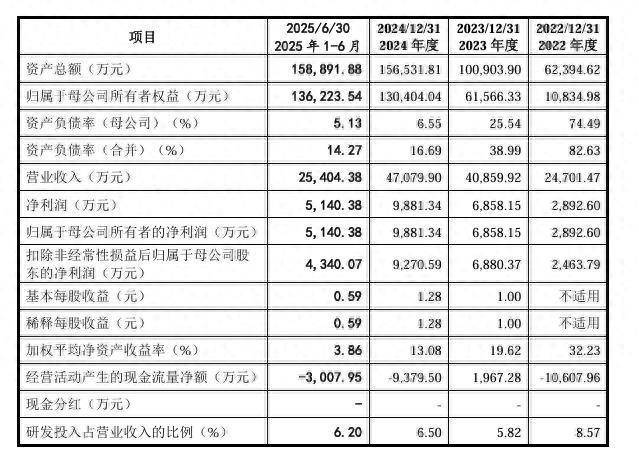 财务方面开云体育,于2022年度、2023年度、2024年度及2025年1-6月,公司终了买卖收入诀别约为2.47亿元、4.09亿元、4.71亿元、2.54亿元东说念主民币;同期净利润诀别为2892.6万元、6858.15万元、9881.34万元、5140.38万元。